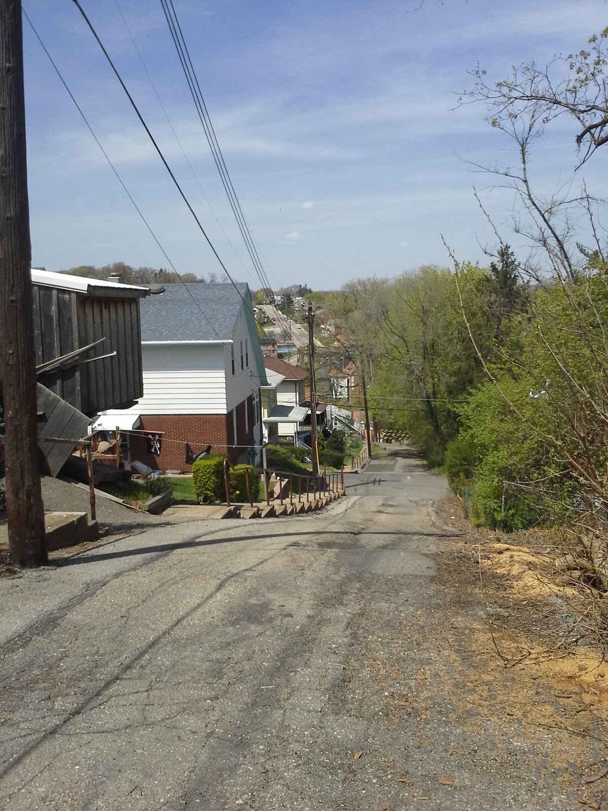 As far as steps are concerned, I encountered too many that were just demolished or too overgrown to count. Many of the steps in Beltzhoover are extremely old brick steps that the city has probably never maintained. Before I go to a place, I scour old maps for locations of steps and plan out a good walk to cover efficiently, as many as possible. Well Beltzhoover's steps were not easily covered. One set in particular, Montooth Way, which cuts through four or five blocks, barely existed. I found myself trudging through grass and mud more than anything hoping to find remnants. I did find some steps but I felt inclined not to count them. Instead I highlighted them on the map with red indicating they should not be traveled.